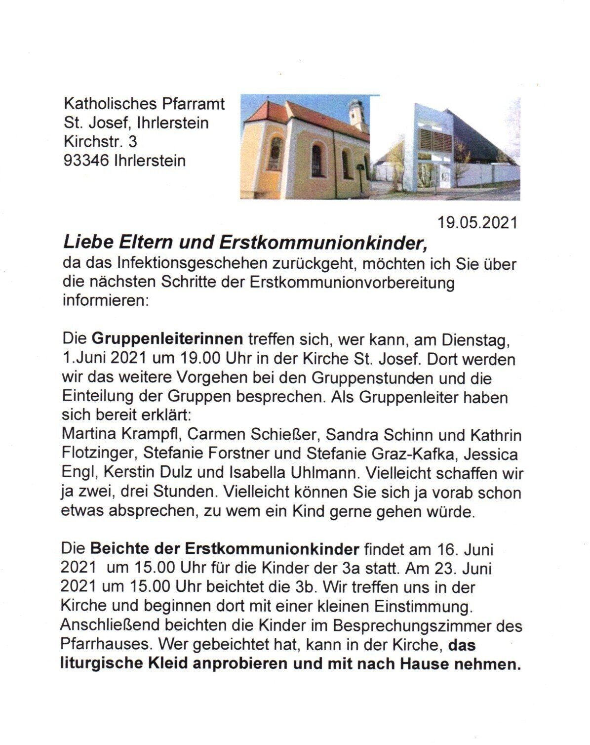 in Gemeinschaft mit den Pfarreien Hl. Geist Essing und St. Georg Painten