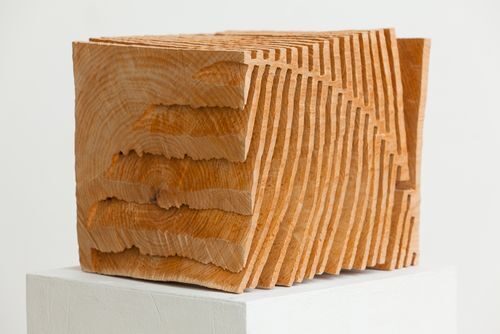 Die Würfel aus der Serie "Tomografie" gewähren zwischen den filigranen Schnitten Einblicke ins Holz. Dabei offenbaren sie innere Räume, die sich nur in der Vorstellung ganz erschließen lassen.